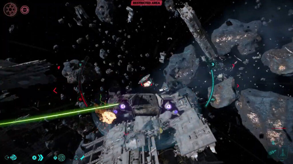 Геймплей Star Wars Outlaws повністю заснований на системі стрільби, оскільки її система ближнього бою зведена до кількох обмежених анімацій і не має глибини, складності чи інших деталей. Але Gunplay — це дуже плавна, плавна та приваблива гра, яка не лише дуже кінематографічна з точки зору структури, але також включає різні привабливі та кінематографічні послідовності. Насправді в цій грі ми можемо використовувати лише зброю Balster; Зброя, яка одночасно перетворюється на три типи електрошоку (для дроїдів і робототехнічних ворогів), одиночний/черговий вогонь і серійний вогонь. Але крім цієї зброї Кей зазвичай не має доступу до будь-якої штурмової гвинтівки, снайперської гвинтівки чи будь-якого іншого бластера і носить лише цю зброю.
