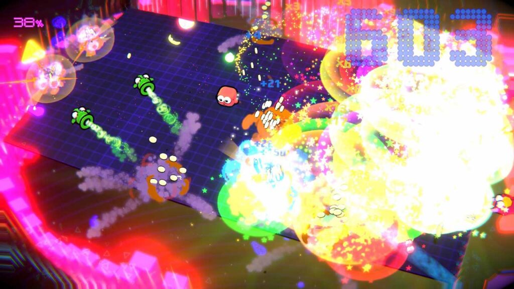 Мені сподобався режим реміксів, де є 30 рівнів для проходження, кожен рівень має срібну бронзову нагороду та платинову нагороду. Але режим Remix — це суть гри, яка пропонує 50 міні-рівнів з єдиною ціллю, які мають унікальний дизайн рівнів і візерунки ворогів, щоб тримати вас напоготові. Крім того, отримання 50 платинових трофеїв дасть вам багато часу, звичайно, моєю улюбленою частиною є аркадний режим, де ми можемо грати, щоб забивати і змагатися з іншими гравцями по всьому світу.