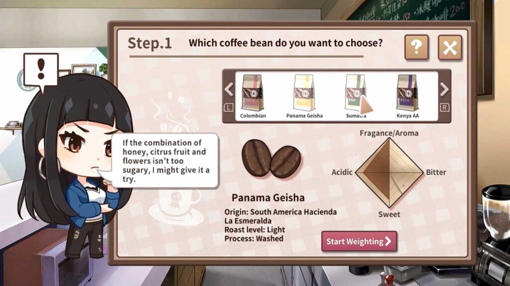 Sunny Café — це розслаблюючий візуальний роман про приготування кави тайванської команди Game Noble. Я грав у цю гру, головним чином, щоб дізнатися про вміст завареної кави в грі. Я грав у схожі назви, як-от «Coffee Talk» (гра, у якій ви варите каву та слухаєте історію) та «Coffee Shop» (у якій не пояснюється вивчення кави, а просто п’ється кава). ручне приготування кави в Sunny Café – це саме те, чого я чекав роками.