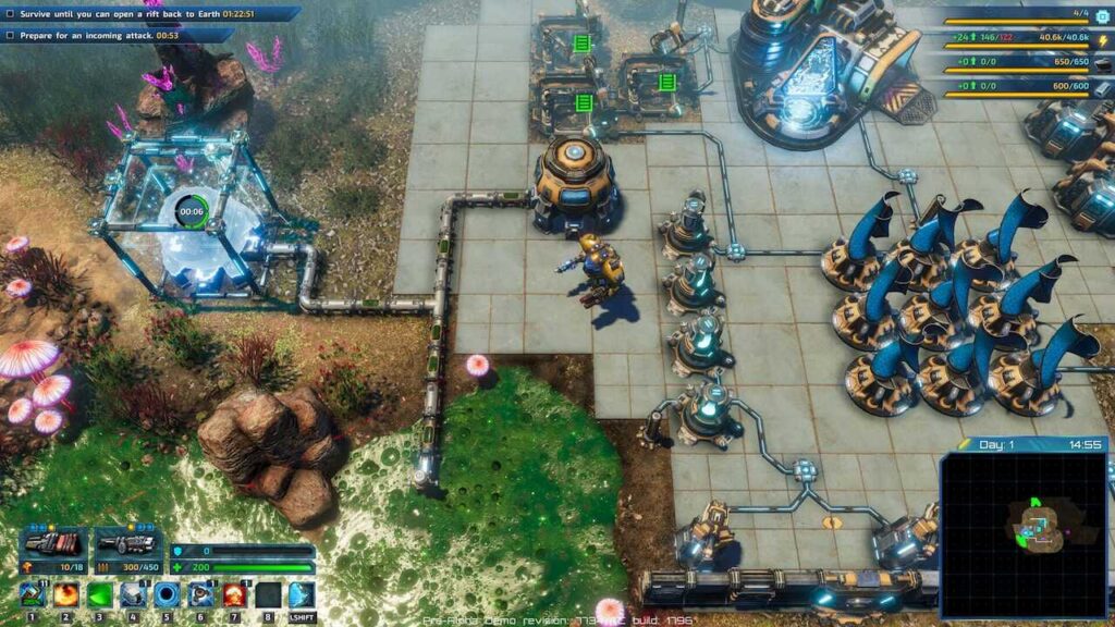 Коли справа доходить до інопланетян, одна з найбільших переваг The Riftbreaker полягає в тому, скільки сили супротивника він може отримати в певні моменти протягом гри – подумайте про найбільшу атаку зерга Starcraft, яку можна уявити, а потім збільште графіку. Бачити, як хвиля інопланетян повністю знищує крило бази, є дивовижною та жахливою завдяки вражаючому шоу The Riftbreaker, але це ніколи не заважає збалансованому досвіду виживання. Навіть менші армії ведуть важливу битву, тому планування стін і оборони завжди конфліктує, але це доповнює дослідження пустелі, щоб отримати більше ресурсів, і просування до кінцевої мети – створення розлому в землі.