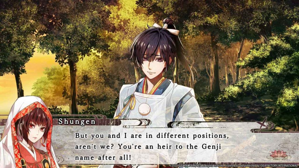 У грі розповідається про наймолодшого спадкоємця Гендзі, жінку на ім’я Шанао, яка була самураєм і має намір знищити попереднього тирана Хейкі. Він живе в глибині гори Курама, і члени його сім’ї були вбиті попередником Хайке. Персонаж Шанао прикидається чоловіком, і ніхто не знає про секрет того, що вона жінка. Насправді він виріс хлопчиком після жорстокої розправи над його сім’єю з дитинства, що нагадує нам характер Мулан. Він завжди має в голові план помститися, знищити попереднього ворога і повернути Гендзі знову до влади, але через деякий час він розуміє, що є щось важливіше, ніж помста і ворожнеча між племенами. Під час своєї пригоди він стикається з багатьма персонажами, які беруть участь у деяких справах, і ці сцени належать до категорії привабливих справ. Цікава річ в історії гри полягає в тому, що в ту епоху, сповнену змов і війн між племенами, також існували деякі романтичні концепції, і я вважаю, що гра була дуже успішною в представленні цих тем і відрізняла її від інших ігор. також ставить свій власний стиль. Також у форматі ігрового роману включено багато важливих історичних подій, за допомогою яких можна покращити свої знання з історії.