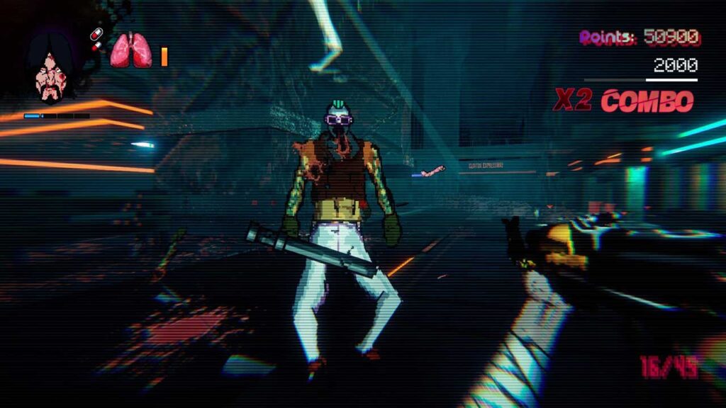 Естетика гри дуже цікава, хоча в цьому плані її не порівняти з Hotline Miami. Звичайно, ви можете змінювати вигляд гри різними способами, окрім режиму за замовчуванням, є ефект сітки та CRT, які надають грі ностальгічного вигляду, і ви навіть можете вимкнути їх усі для чистого стилю. Саундтрек точно нагадує те, що мені хочеться слухати, переживаючи екзистенційну кризу та вбиваючи невинних пасажирів. Звичайно, він чудово підходить для швидких дій у нічних клубах, заповнених бандитами та членами банд.