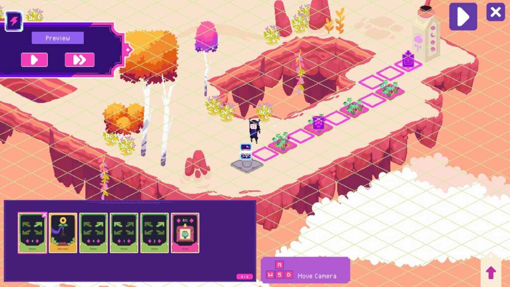 Вам доведеться займатися всім своїм фермерством за допомогою магічно активованих структур Аркан. Ці живі об’єкти, наповнені магією, обробляють ґрунт, поливають рослини та приносять винагороду гравцеві. Унікальна магічно запрограмована механіка фермерства в грі дозволяє автоматизувати виробництво, встановлюючи команди карт без будь-яких ручних зусиль чи витривалості. Це також допомагає розвивати навички логічного мислення. Бачити, як ваше програмування стає реальністю, неймовірно приємно.