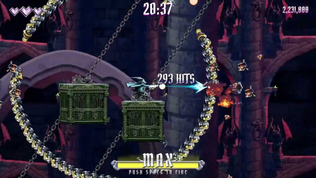 Тут у вас є виклик кожні п’ять секунд. Ця складність настільки розчаровує, що вам хочеться викинути свій контролер… але з любов’ю, знаючи, що в кожній невдачі винні ви, а не гра. У цій грі є кілька режимів: сюжетний режим складається з усіх двох етапів і бою з босом, а інші ігрові режими не пропонують нічого більше. Time Attack — це просто змагання за те, щоб якнайшвидше пройти сюжетний режим за одне життя, і це нескінченний режим, у якому дійсно починають закрадатися недоліки гри. Ні те, ні інше не особливо корисно, коли на екрані повно ворогів, які наближаються до вашої позиції. Це, у поєднанні з тим фактом, що ваше поле зору значною мірою обмежене напрямком, у якому ви стріляєте, створює серйозні проблеми для легітимності складності цієї гри.