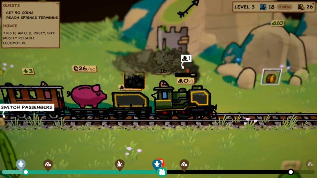 Під час гри завжди слід звертати увагу на смужку в нижній частині екрана, тому що якщо вона досягне нуля, ваше здоров’я буде поступово знижуватися. Вони формують ті самі аспекти виживання в грі, що й в інших класичних назвах. Продовжуючи, ви отримуєте більше пасажирів, і ви можете попросити їх зробити щось за вас: наприклад, допомогти вам зібрати ресурси або озброїтися зброєю та захистити поїзд від нападу ворогів. Так, ви правильно прочитали, ви також повинні додати ризик нападу ворога до інших елементів керування грою.