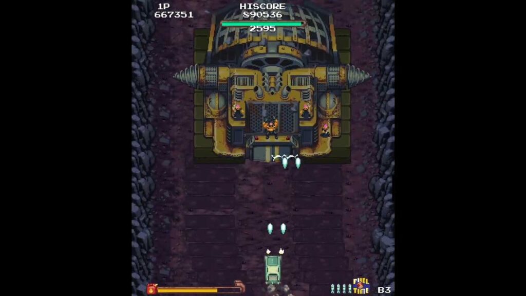Нарешті, є механіка підрахунку очок, завдяки якій гра стає ще цікавішою. Існує множник очок, який або збільшується, коли ви знищуєте ворогів спеціальним пострілом, або коли у вас є додаткове паливо, і зменшується, коли ви отримуєте пошкодження. Коли ви досягнете множника до 9, вороги почнуть скидати наповнені очками медалі, особливо якщо ви влучите в них своїм спеціальним пострілом! …Це також стосується босів, коли ви наносите їм завершальний удар. Ви повинні бути обережні, щоб не отримати удар під час боїв, тому що коли ви закінчите їх із множником очок 9, ви отримаєте дуже сильну медаль!