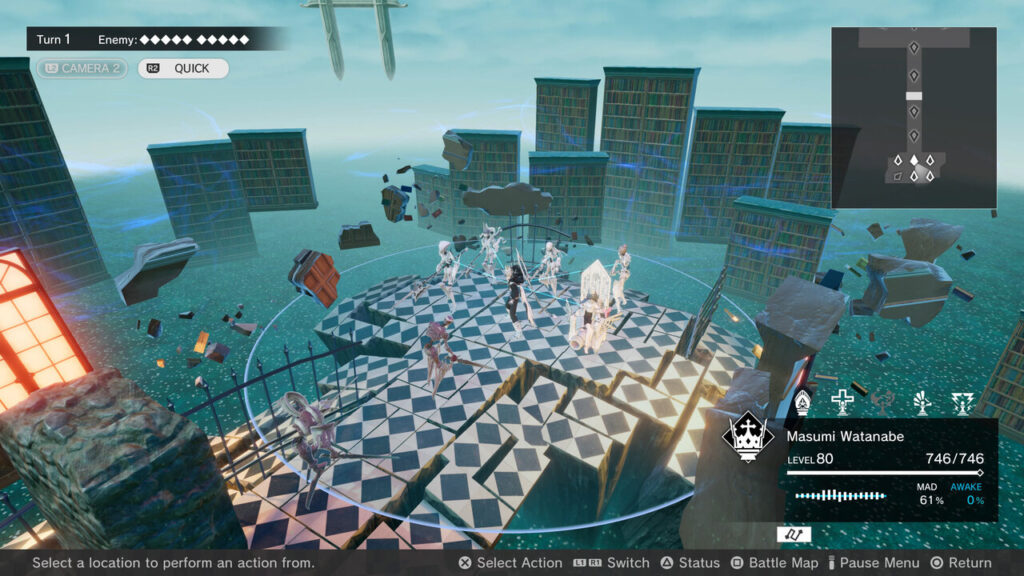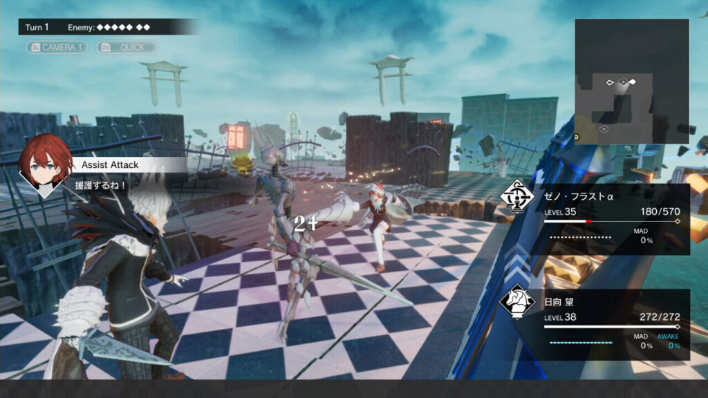 У гравців є чотири можливі дії: використати здатність або повноваження, використати предмет, відкласти іншого учасника та почекати. Очікування, поки персонаж дозволить трохи покращити HP, водночас відкладаючи персонажа, який уже зробив цей раунд, дозволяє йому повернутися до вартості збільшення його показника божевілля. І здібності, і здібності можна розглядати як навички, але різниця полягає в тому, що ті, які позначені як здібності, здебільшого є образливими, включаючи початкові атаки або потужні атаки, які коштують HP, тоді як гібридні посадові особи більші, ніж Агресивні навички, є лікувальними та інвазивними та збільшуються. Божевілля персонажа може бути небезпечним, якщо його використовувати для збільшення божевілля, тому що коли воно досягає 100%, персонаж починає атакувати своїх союзників, перш ніж буде нокаутований кілька разів пізніше. На додаток до божевільного пристрою, члени Людської Партії мають вимірювач пробудження, який піднімається під час нападу або використання їхньої спеціальної здатності Розв’язування. Коли індикатор пробудження заповнений, він створює спеціальний ореол, одночасно збільшуючи статистику та забезпечуючи доступ до унікальної здатності протягом кількох раундів. Хоча божевілля в основному є небезпекою, його можна використати на користь гравця, оскільки максимізація божевілля і одночасно пробудження дає особливий стан просвітлення з високою силою. Це важко досягти — використовуючи унікальну силу головного героя, щоб резонувати з союзниками та ворогами, — але це дуже приємно, коли це досягається, і навіть перед босами це великий стіл. Роль божевілля під час битв є новаторською і змушує гравців звернути серйозну увагу на певні дії. Крім того, ентузіасти і хвороби мають явний вплив і можуть бути використані для досягнення мудрої переваги.